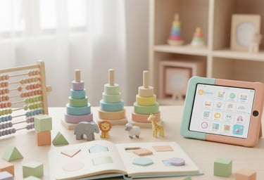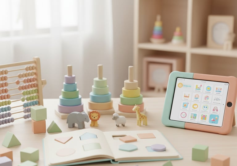 Recursos exclusivos de estimulação precoce e pedagógicos, desenvolvidos com base em neurociência e Montessori, que estimulam fala, atenção, coordenação e habilidades socioemocionais, transformando o dia a dia em aprendizado lúdico e eficaz.