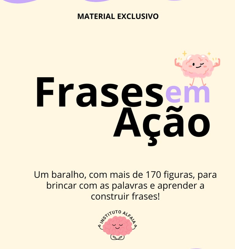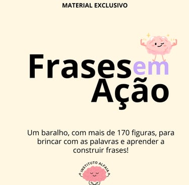 Recursos visuais com artigos, substantivos e verbos, que permitem à criança escolher imagens e criar frases ou histórias, estimulando linguagem, criatividade e escrita de forma lúdica e prática.