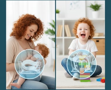Amamentar também é estimular o desenvolvimento neuromotor e fonoaudiológico. A sucção no peito fortalece músculos da língua, lábios e mandíbula, essenciais para funções como respirar, engolir, mastigar e, futuramente, falar. Esse movimento natural ajuda no crescimento adequado do rosto e do palato (céu da boca), prevenindo dificuldades de fala, respiração bucal e problemas na arcada dentária.